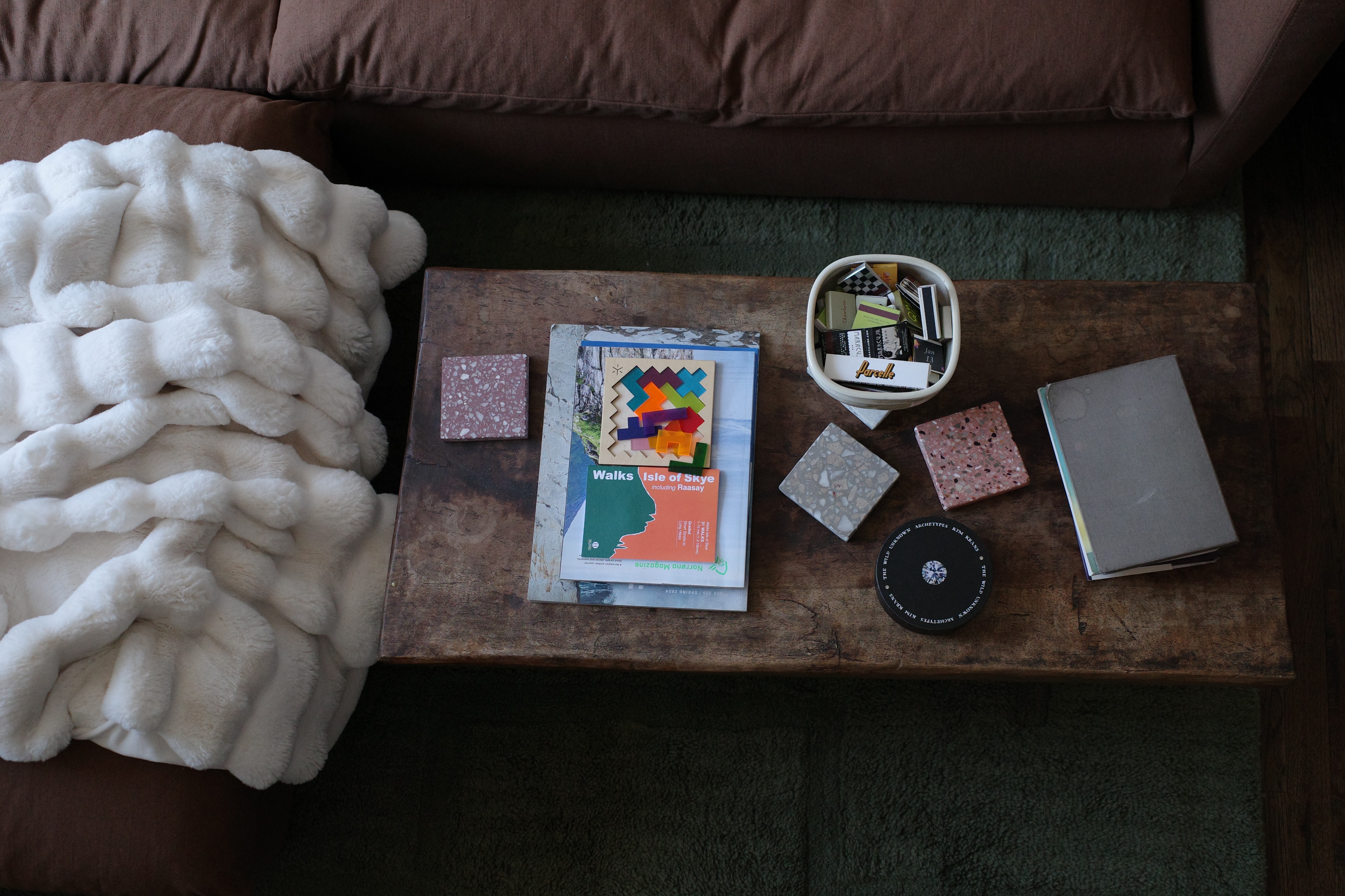 Vince Skelly ne se contente pas de sculpter le bois, il en extrait une sorte de mémoire. Travaillant avec des morceaux de bois récupérés provenant de toute la Californie et du Pacifique Nord-Ouest, il façonne chaque forme à partir d'un seul bloc, laissant le fil, les nœuds et les rythmes naturels du bois guider ce qu'elle devient. Ses influences vont de Brancusi aux Pierrafeu en passant par les tempêtes de vent locales, et les résultats semblent à la fois déterrés et nouvellement vivants, comme des meubles d'un temps qui ne s'est pas encore produit…parfois fonctionnels, parfois non, mais toujours indéniablement les siens. Si le travail de Vince semble mythique, la vie quotidienne est plus élémentaire : un espresso dans une tasse faite par un ami, marcher sur le chemin de gravier du jardin, monter sur un skateboard. Il y a une symbiose entre sa façon d'aborder la forme et sa manière de se déplacer dans le monde—attentif à la texture, aux conditions météorologiques et au lent déploiement de la forme au fil du temps.