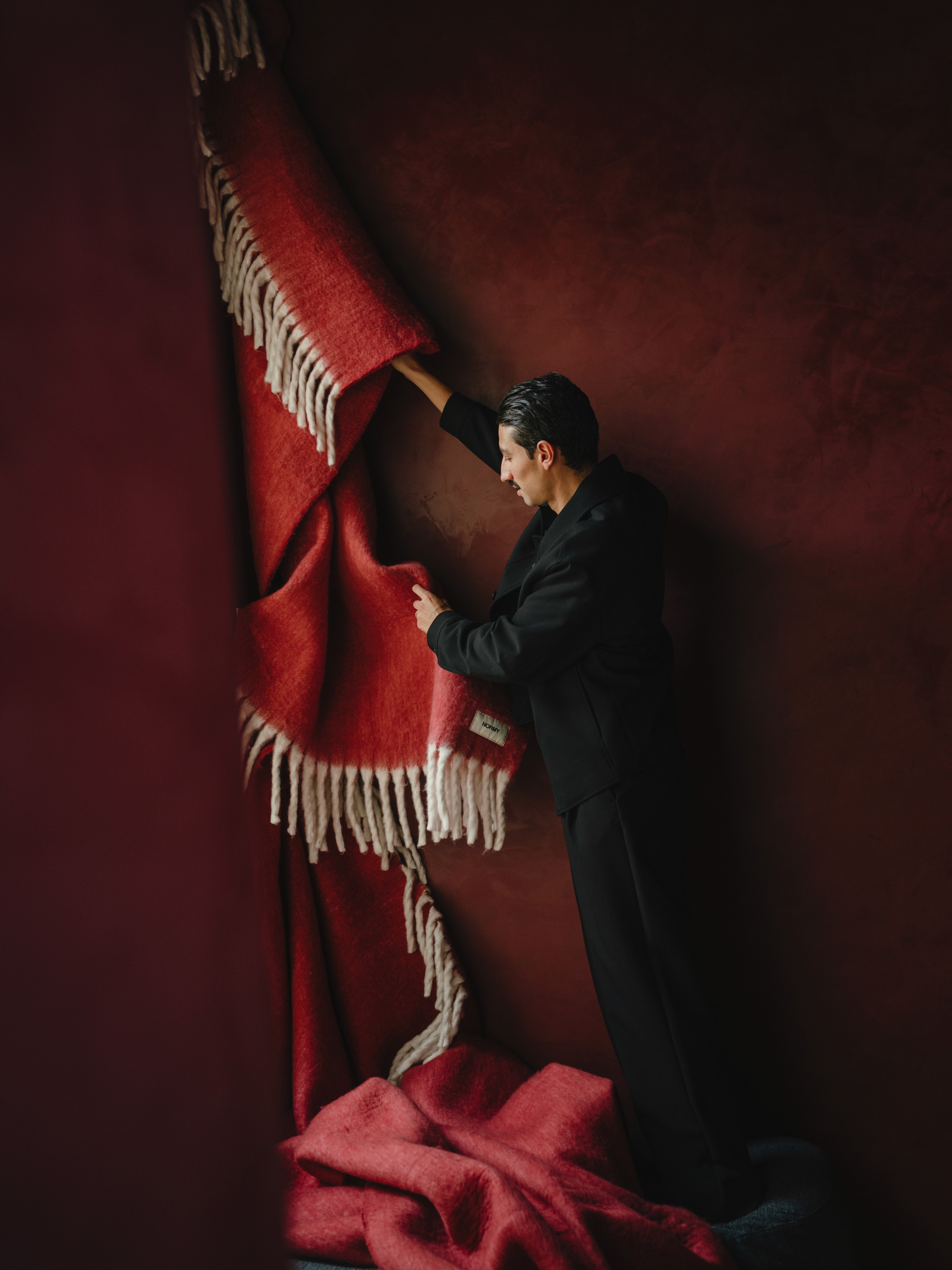 Comfort Reframed was meant to show blankets as something that’s deeply functional, yes, but also quietly expressive. The kind of object that subtly changes the feeling of a room just by being there. Working closely with Nicolas and Sheridan, we followed their instincts for creating spaces that feel natural but still carry a little surprise. Together, we found moments for Normy blankets to show up in ways you wouldn’t normally expect. Not neatly folded on the back of a couch. Instead, they drifted down from the ceiling, poured gently out of the bathtub, or rested wherever they happened to land. Like soft little sculptures that just casually made themselves at home.