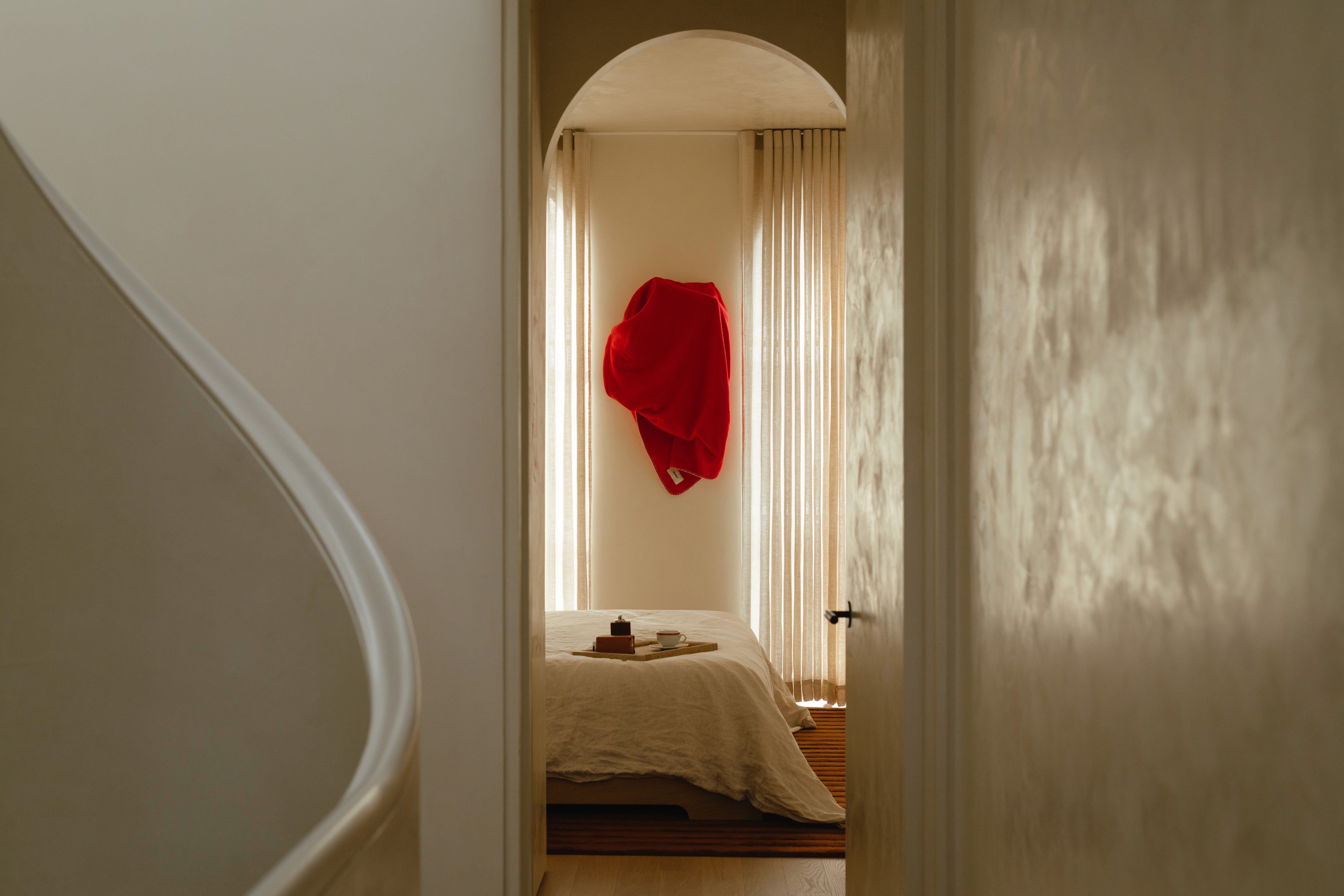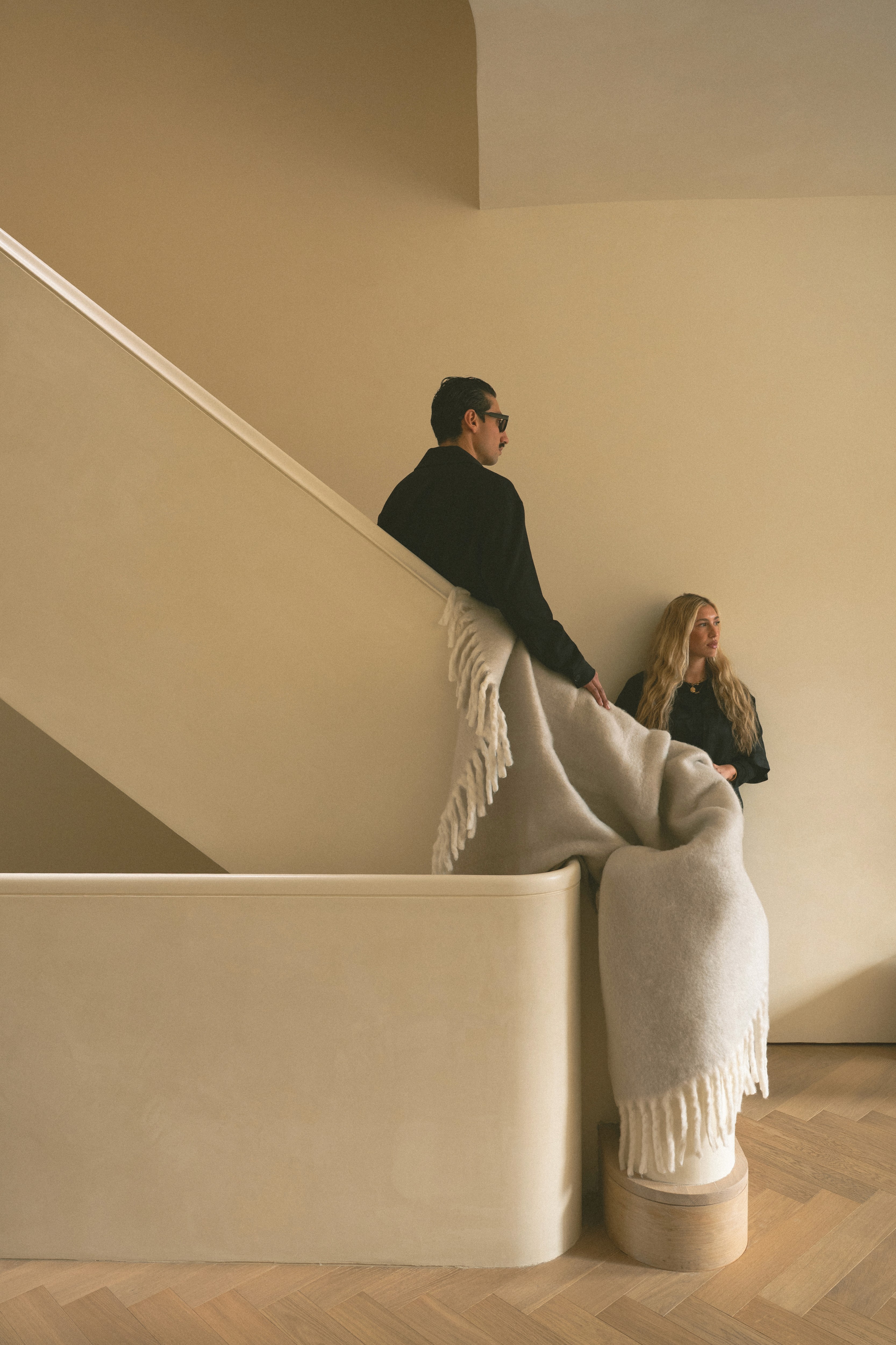 The design process with Atelier MiDi was something you could feel in every room. The house slowly became a kind of gallery, but the cozy kind. The kind that still feels like someone could actually live there. Architecture and textiles weren’t competing for attention; they were more like good roommates, quietly supporting each other. Together, we started thinking about blankets as both the material and the muse. A layer that could soften a sharp architectural line. A fold that could change the mood of a staircase. A bit of colour that introduced a new rhythm to the room. And then there were the smaller moments - the ones you almost miss. The way a throw casually draped across the back of a sofa, or the way it gathered at the base of a wall like it had just settled there for the day. Little gestures that, somehow, ended up holding the whole space together.